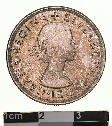 This was the first issue for Elizabeth II. This is a specimen strike (sometimes called a proof). Specimens were produced this year for official purposes only.