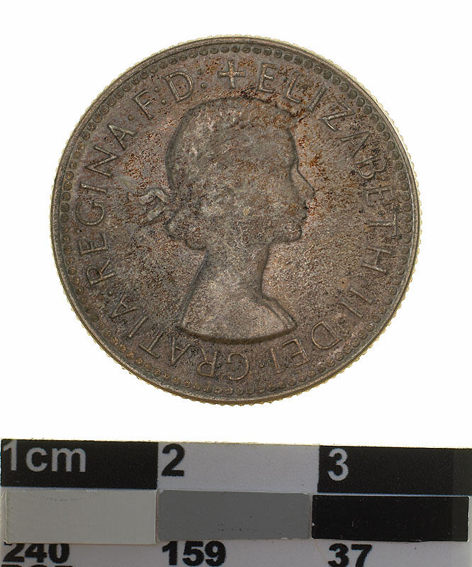 Head of Elizabeth II, laureate right; around, + ELIZABETH . II . DEI . GRATIA . REGINA . F: D: