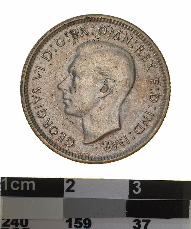 Between 1942 and 1944, on account of war efforts, mints in the United States of America and India were employed to strike coins for Australia. On this coin the mint mark, S for San Francisco, is in the field above the letter "N" of SHILLING.