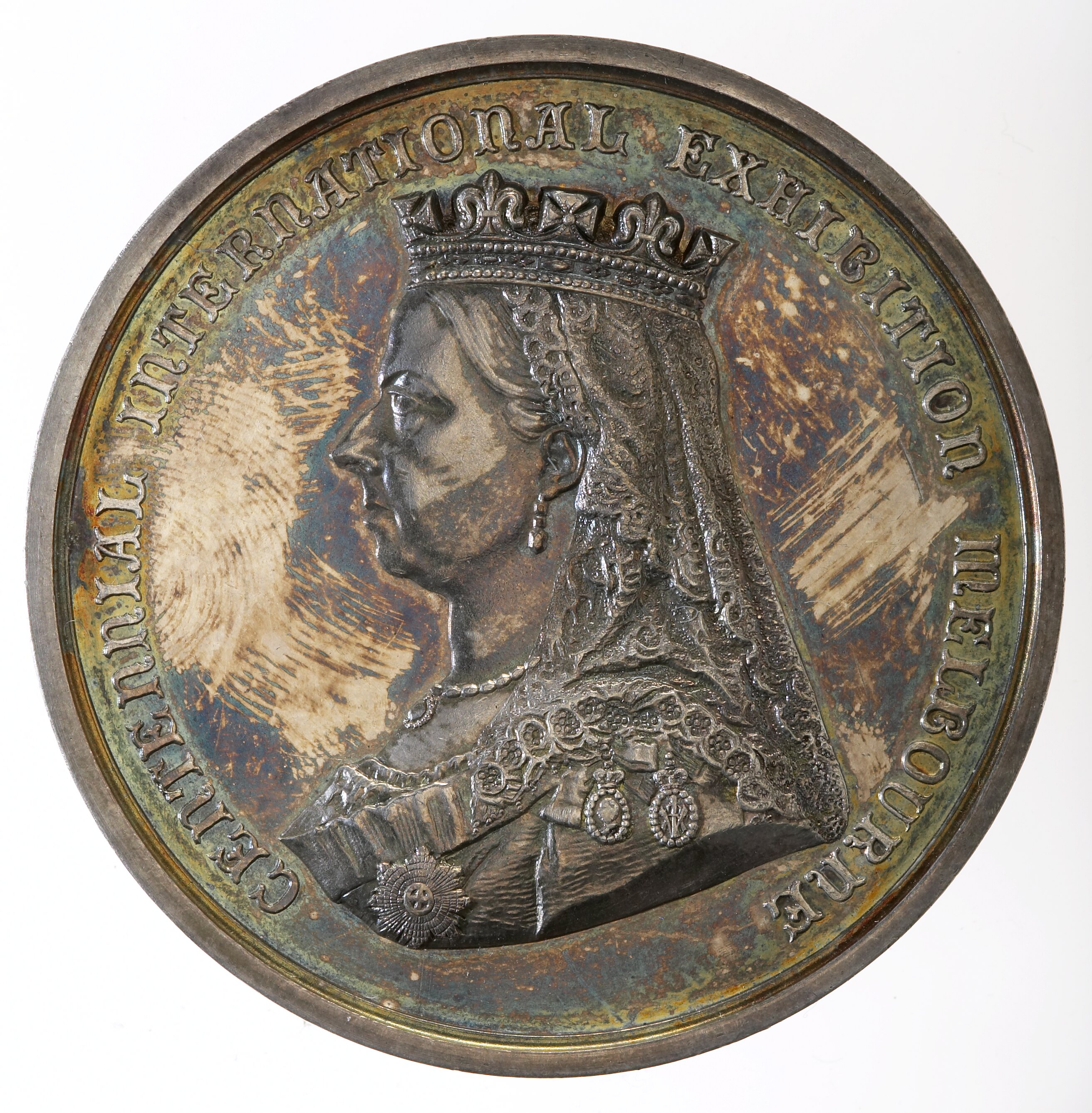 Crowned bust of Victoria left; around, CENTENNIAL INTERNATIONAL EXHIBITION MELBOURNE