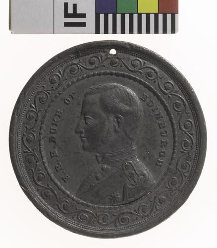 Other Details: Alfred, Duke of Edinburgh, Queen Victoria's second son, was Australia's first royal visitor. Arriving in 1867, he stayed for six months. This medal was the first of four versions issued. It features HMS Galatea, a ship driven by both steam and sail. During his visit to Sydney there was an attempted assassination of the Duke, who received a bullet wound to the back.