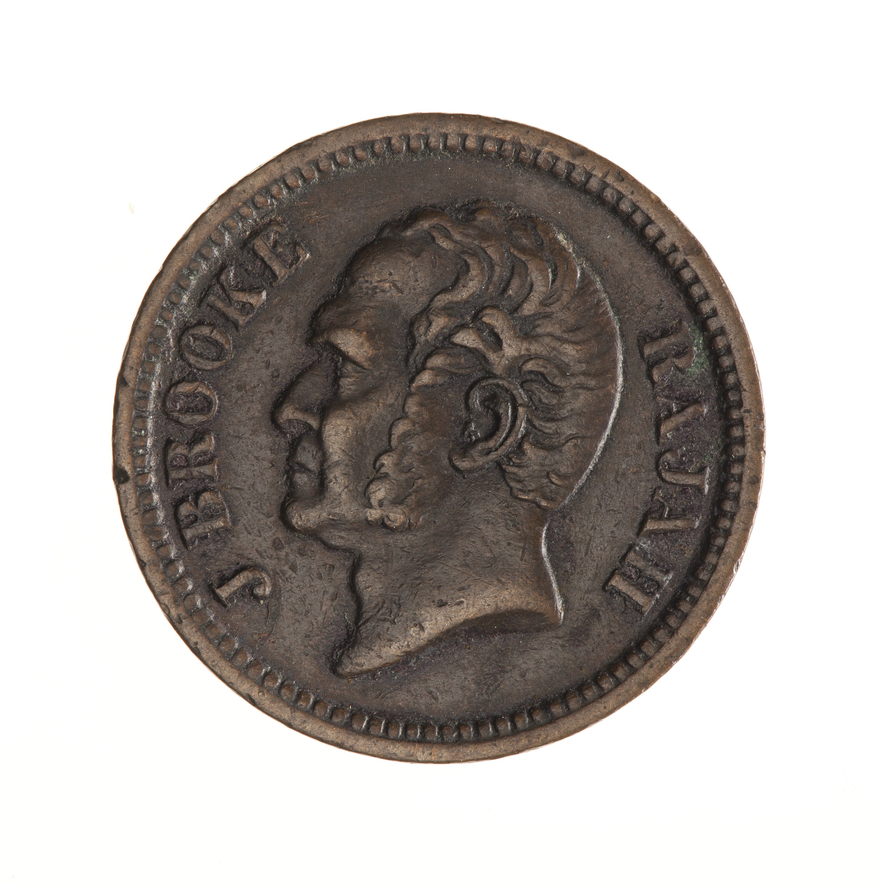 Head of James Brooke facing left; around, J. BROOKE RAJAH