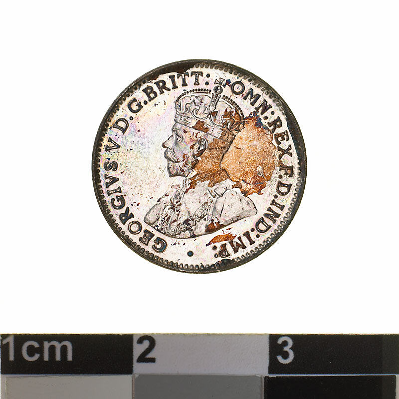 Obverse: GEORGIVS V D.G. BRITT: OMN: REX F.D. IND: IMP: Reverse: THREEPENCE 1916 ADVANCE AUSTRALIA M