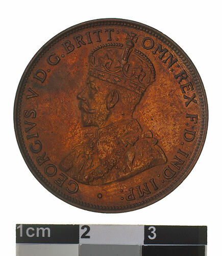Obverse: GEORGIVS V D.G. BRITT: OMN: REX F.D. IND: IMP: Reverse: ONE PENNY COMMONWEALTH OF AUSTRALIA 1924