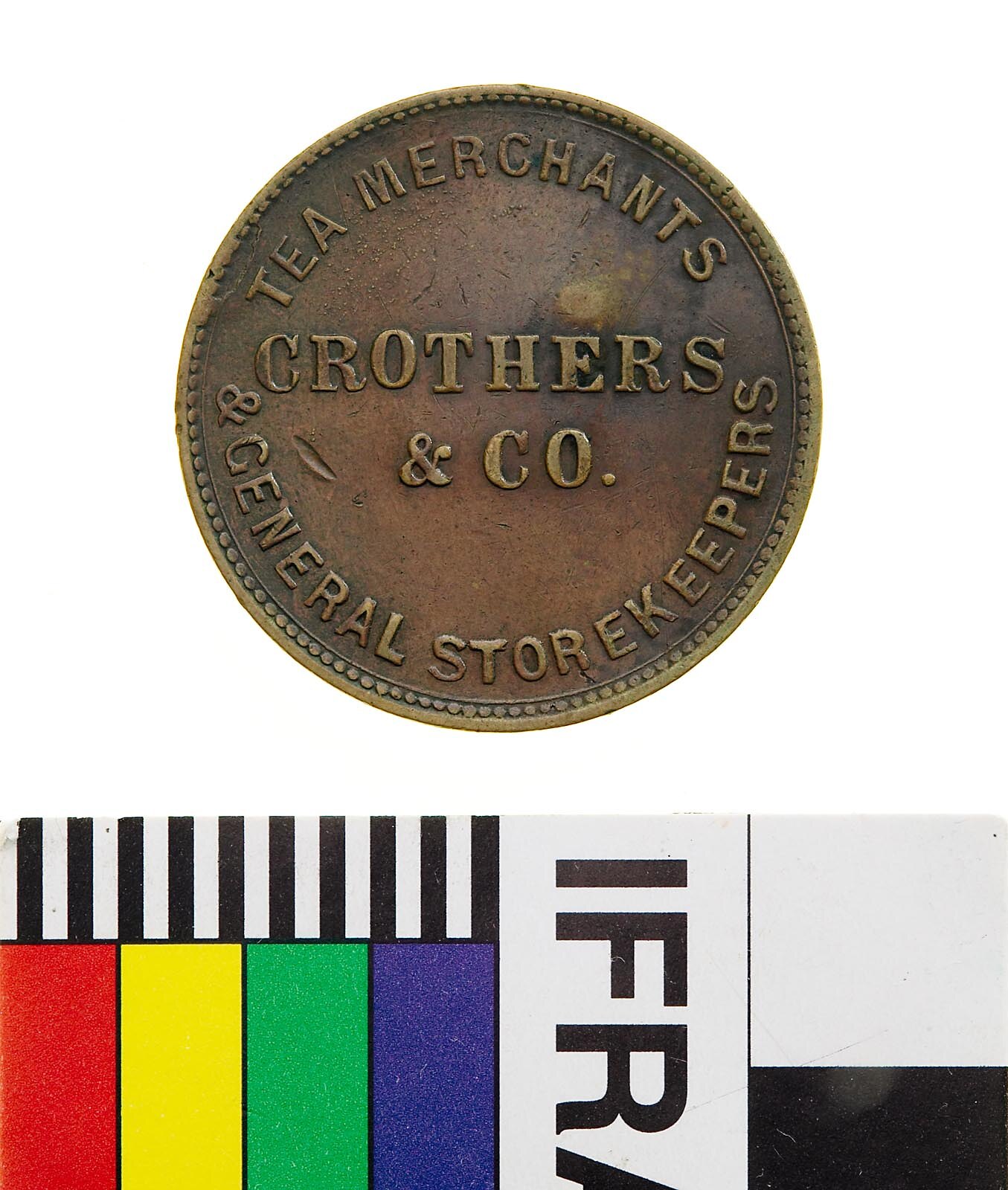 Obverse: CROTHERS & CO. TEA MERCHANTS & GENERAL STOREKEEPERS Reverse: THE ORIGINAL CASH STORE MAIN ST. STAWELL