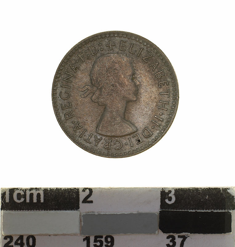 On the first issue of this denomination in the name of Elizabeth II in 1953, reference to her role as Defender of the Faith (F:D: or FIDEI DEF:) in the obverse legend was omitted but after extensive complaint in Australia it was returned on the standard coinage from 1955 (it was first used on the commemorative florin for the Royal visit in 1954)