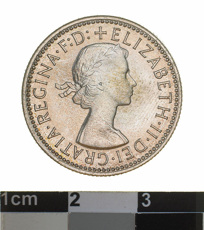 Head of Elizabeth II, laureate right; around, + ELIZABETH . II . DEI . GRATIA . REGINA . F: D:
