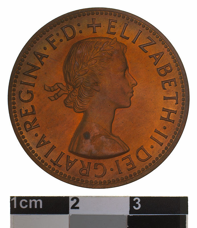 Obverse: + ELIZABETH . II . DEI . GRATIA . REGINA F: D: M.G. Reverse: AUSTRALIA PENNY KG 1959