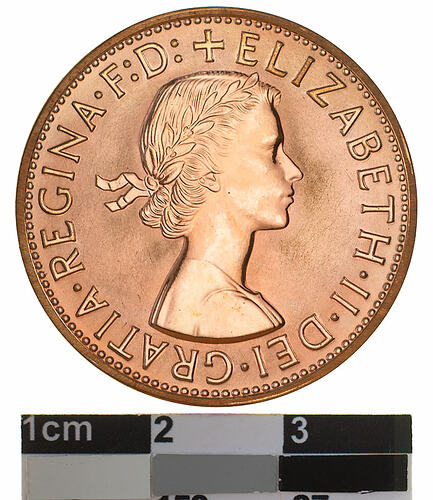 Obverse: + ELIZABETH . II . DEI . GRATIA . REGINA F: D: M.G. Reverse: AUSTRALIA PENNY. KG 1961