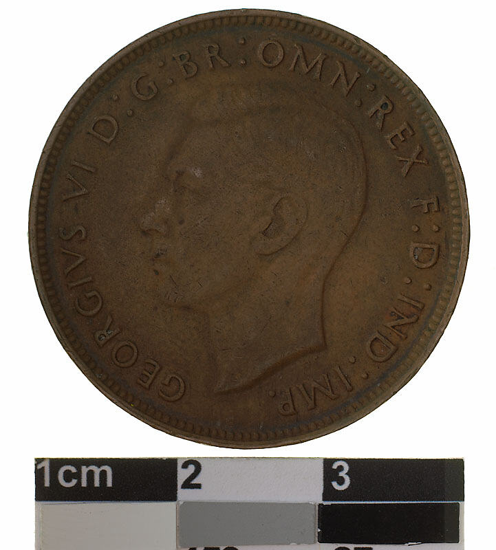Obverse: GEORGIVS VI D: G: BR: OMN: REX F: D: IND: IMP: Reverse: AUSTRALIA 1946 PENNY KG