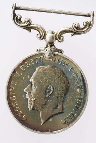 GEORGIVS V BRITT: OMN: REX ET IND: IMP: B.M. (Bertram Mackennal) FOR LONG SERVICE AND GOOD CONDUCT