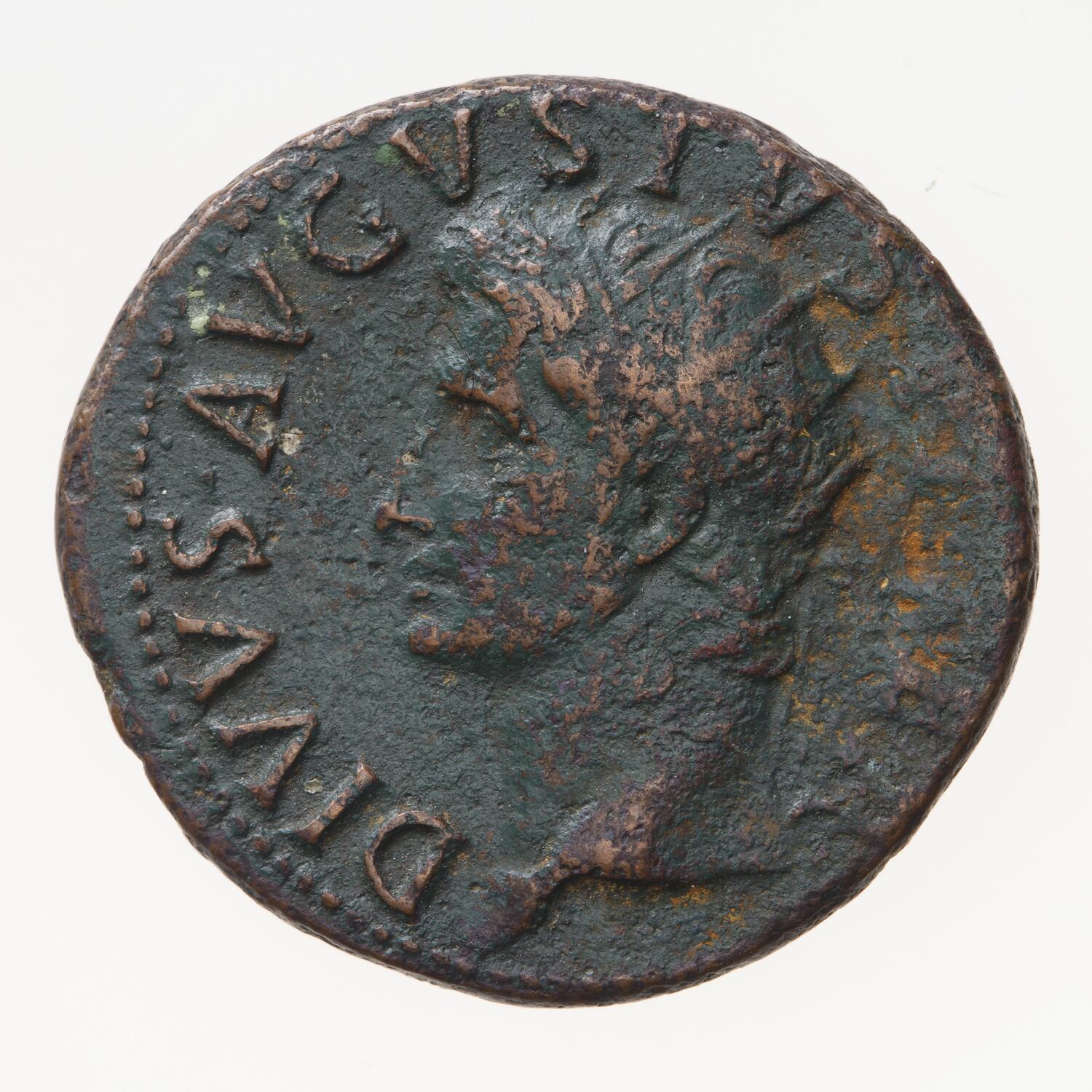 As postumous issue for Augustus struck in the reign of Tiberius, Ancient Roman Empire. Minted by Rome. Augustus died in 14 AD and was deified. Tiberius succeeded him and began issuing coper coins in honour of Divus Augustus perhaps as early as 15 AD. This coin was part of the fifth of six different issues struck before 37 AD. Production of this type began in 22 or 23 AD and ended in about 30 AD.