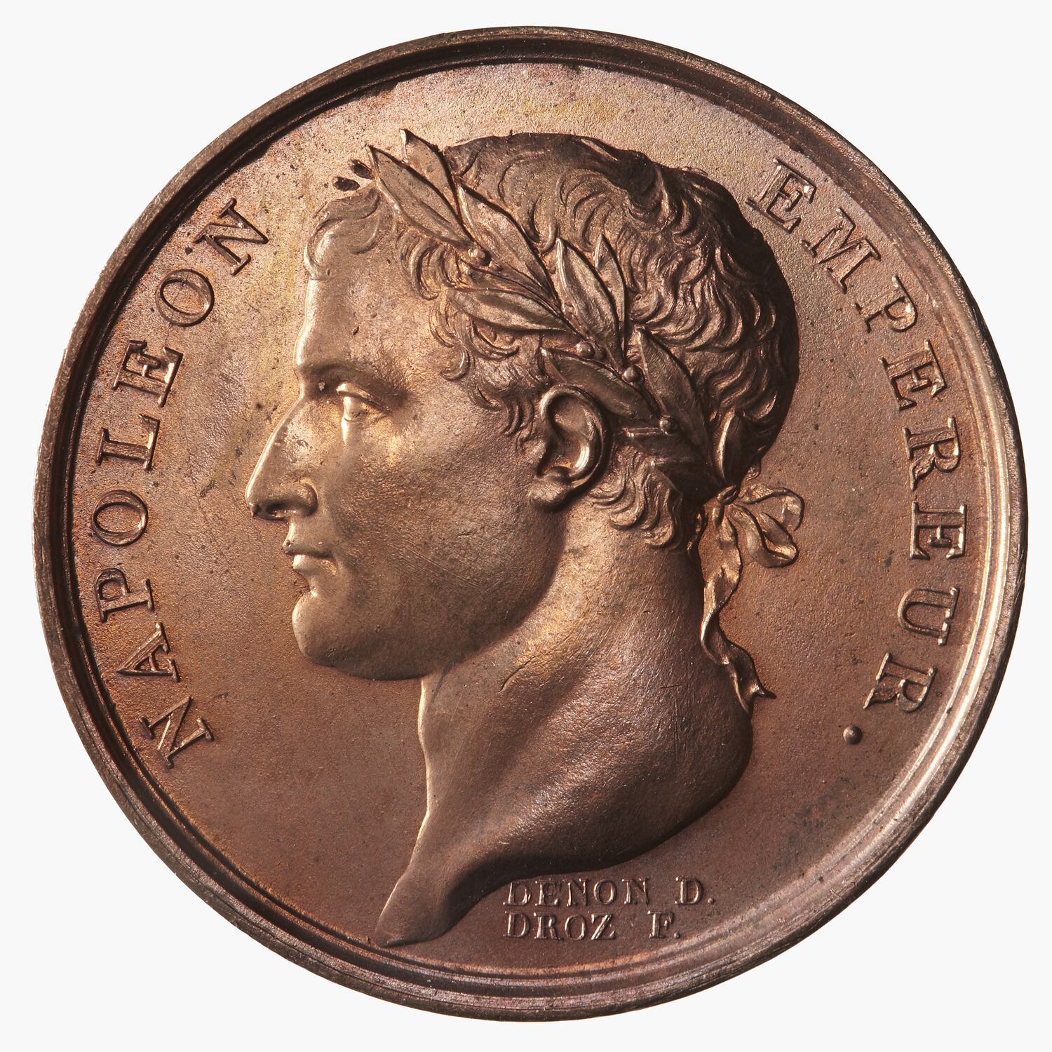 Laureate head right; around, NAPOLEON EMPEREUR.; below in small letters, DENON DIR / DROZ FECIT