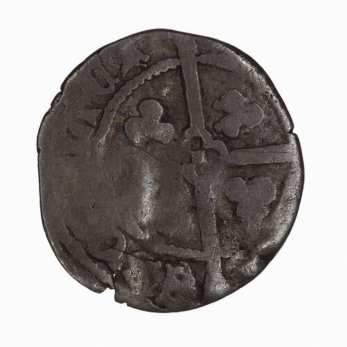 This coin is worn and has been clipped. A crowned bust of the King facing with a lis on bust; around, RICARD REX ANG ..