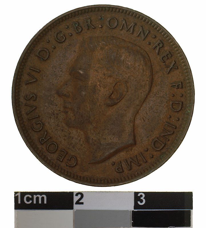 Obverse: GEORGIVS VI D: G: BR: OMN: REX F: D: IND: IMP: Reverse: AUSTRALIA 1941 PENNY KG