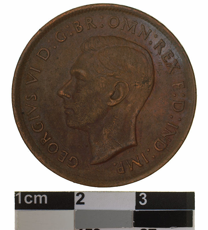 Obverse: GEORGIVS VI D: G: BR: OMN: REX F: D: IND: IMP: Reverse: AUSTRALIA 1947 PENNY KG