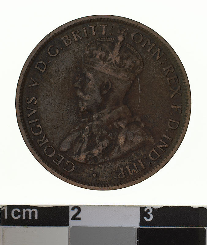 Obverse: GEORGIVS V D.G. BRITT: OMN: REX F.D. IND: IMP: Reverse: ONE HALF PENNY COMMONWEALTH OF AUSTRALIA 1914 H