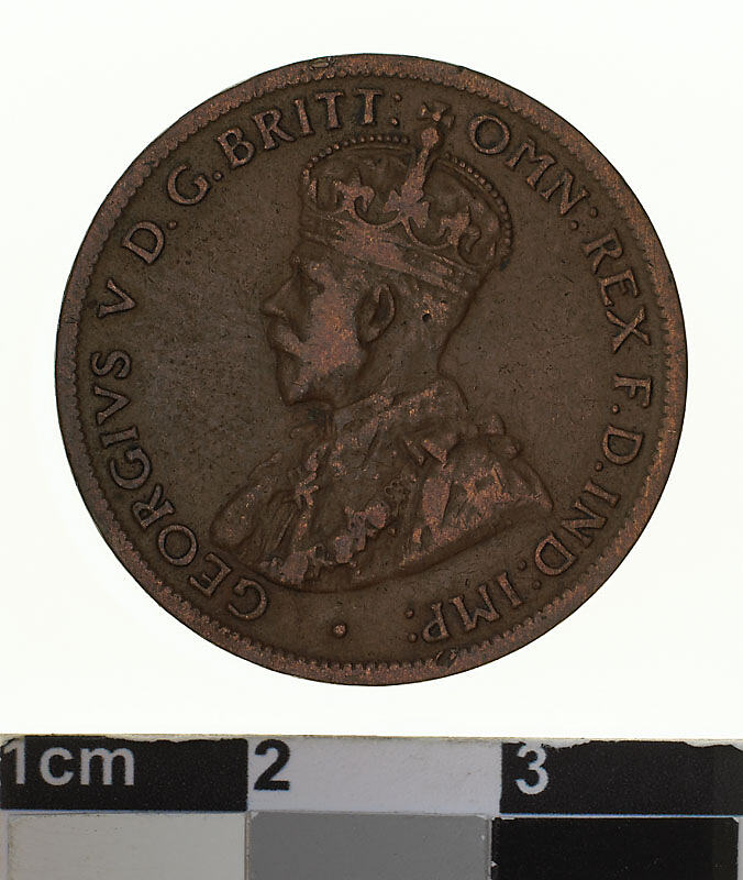 Obverse: GEORGIVS V D.G. BRITT: OMN: REX F.D. IND: IMP: Reverse: ONE HALF PENNY COMMONWEALTH OF AUSTRALIA 1922