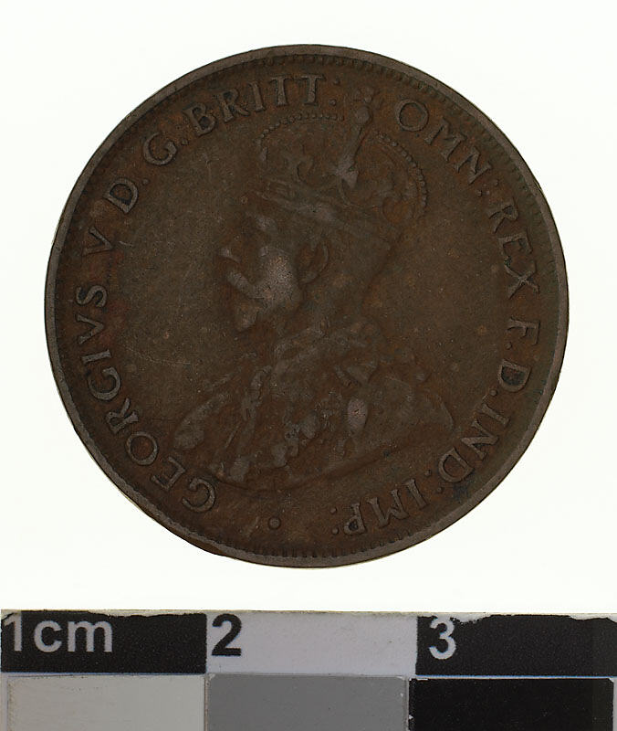 Obverse: GEORGIVS V D.G. BRITT: OMN: REX F.D. IND: IMP: Reverse: ONE HALF PENNY COMMONWEALTH OF AUSTRALIA 1929
