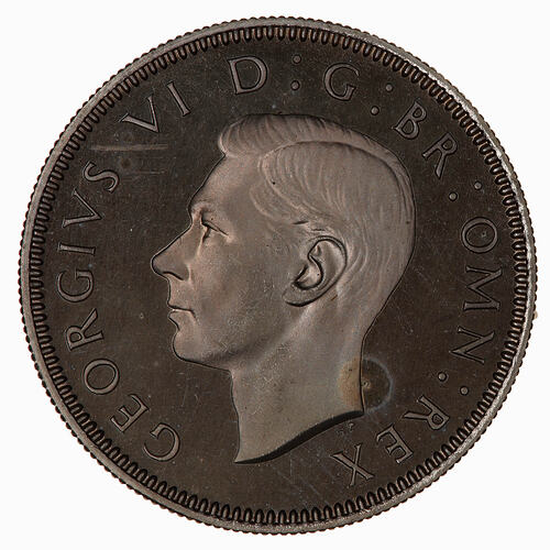 Bare head of the King facing left; below neck in small letters, HP (T. Humphrey Paget); around, GEORGIVS VI D: G: BR: OMN: REX