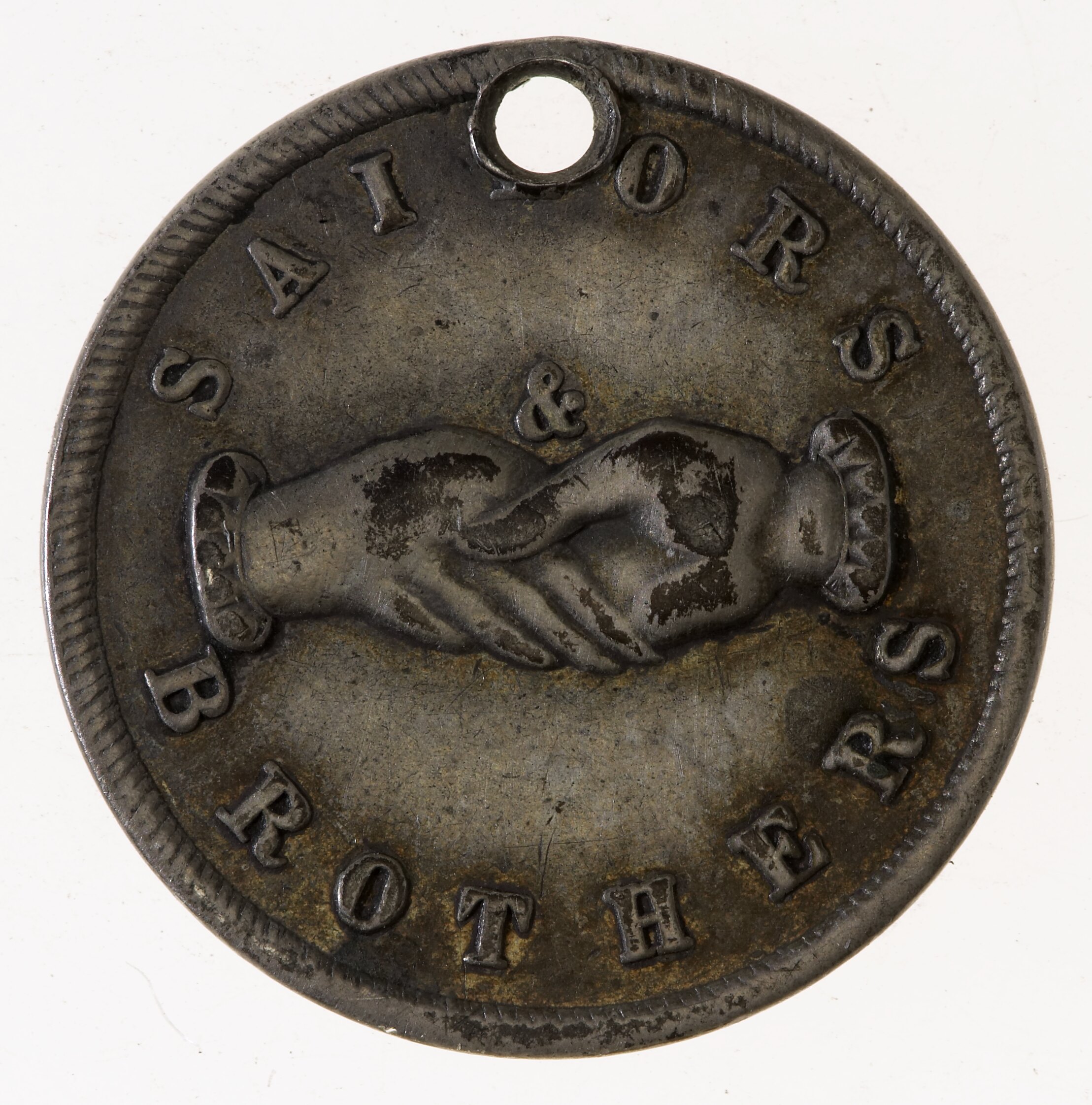 At centre, two clasped hands; above, SAILORS / & ; below, BROTHERS ornate rim beading