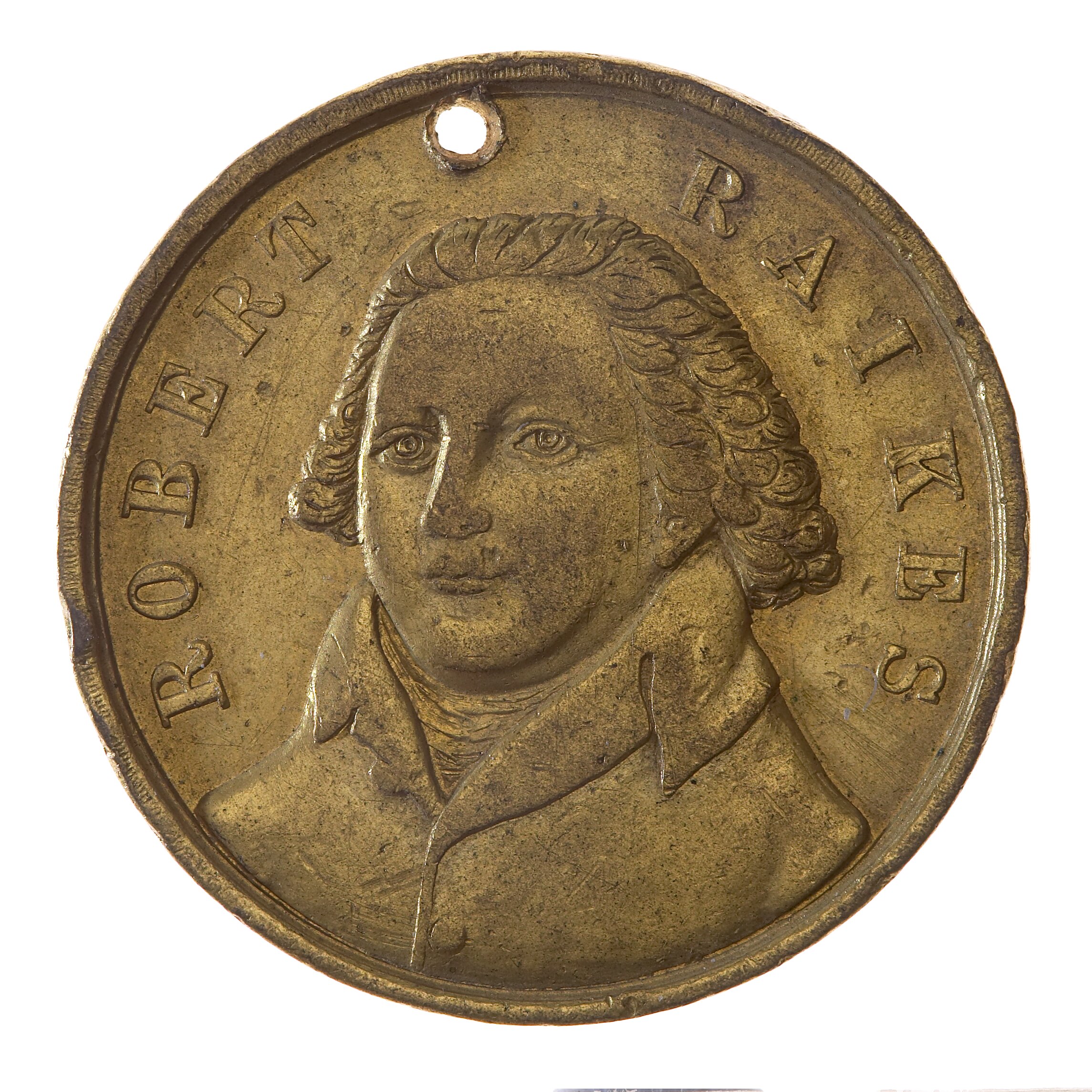 Bust of Robert Raikes facing 3/4 left; around, ROBERT RAIKES
