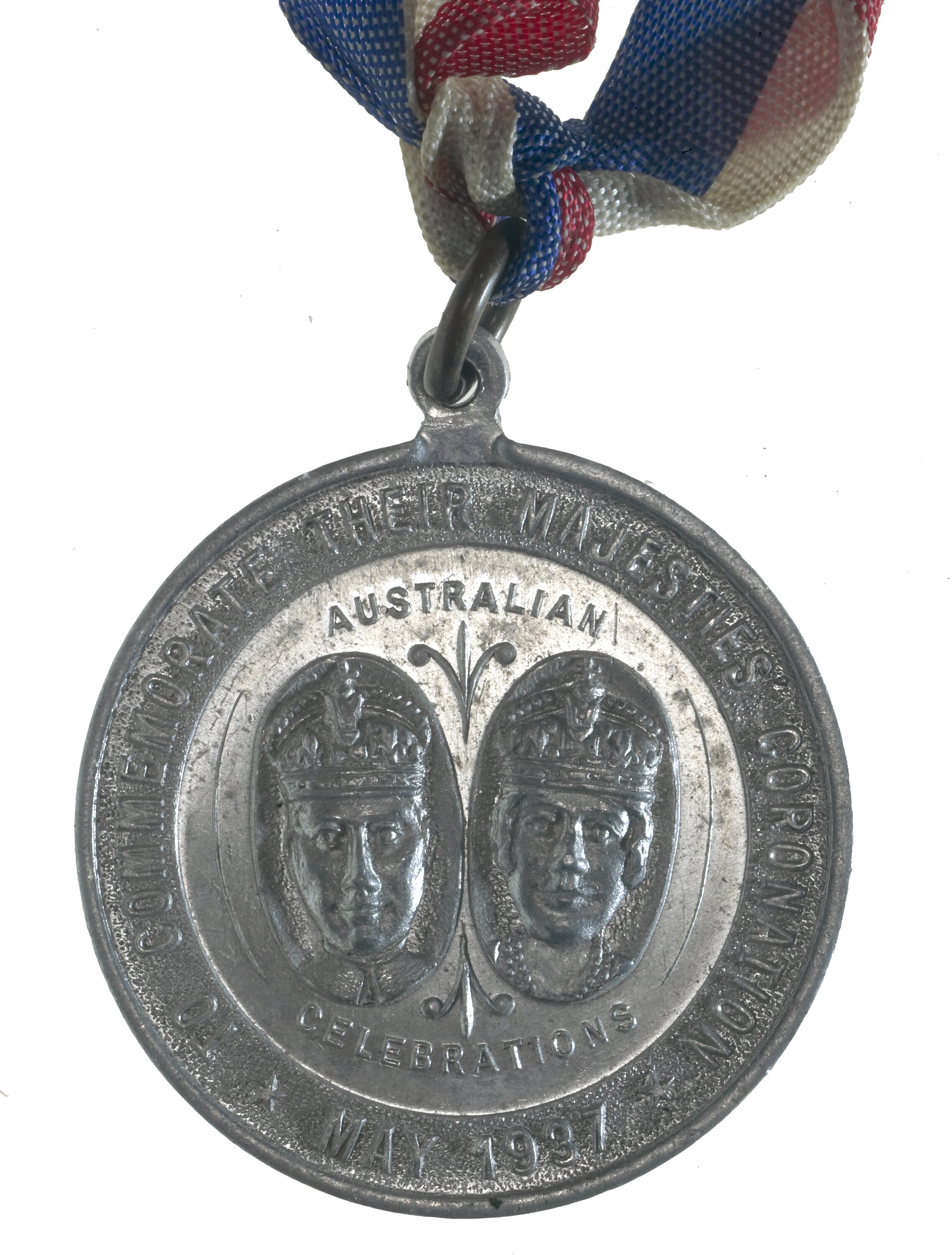 Within two ovals at centre, facing crowned busts, above, AUSTRALIAN, below, CELEBRATIONS; around, TO COMMEMORATE THEIR MAJESTIES CORONATION * MAY 1937 *