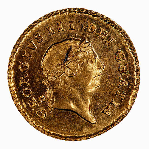 Laureate head of George III facing right; around, GEORGIVS III DEI GRATIA.
