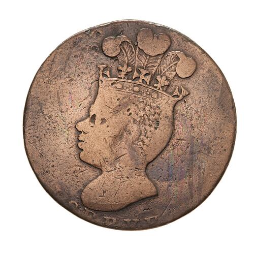 1 Penny token, Issued by, Sir Philip Gibbs, Barbados, 1788.