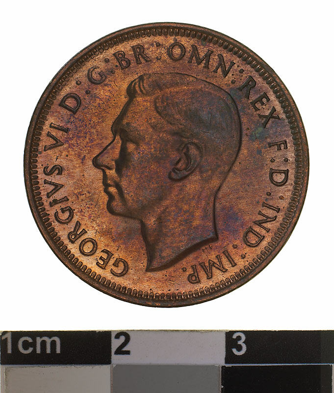 Obverse: GEORGIVS VI D: G: BR: OMN: REX F: D: IND: IMP: Reverse: AUSTRALIA HALF PENNY. 1942 KG