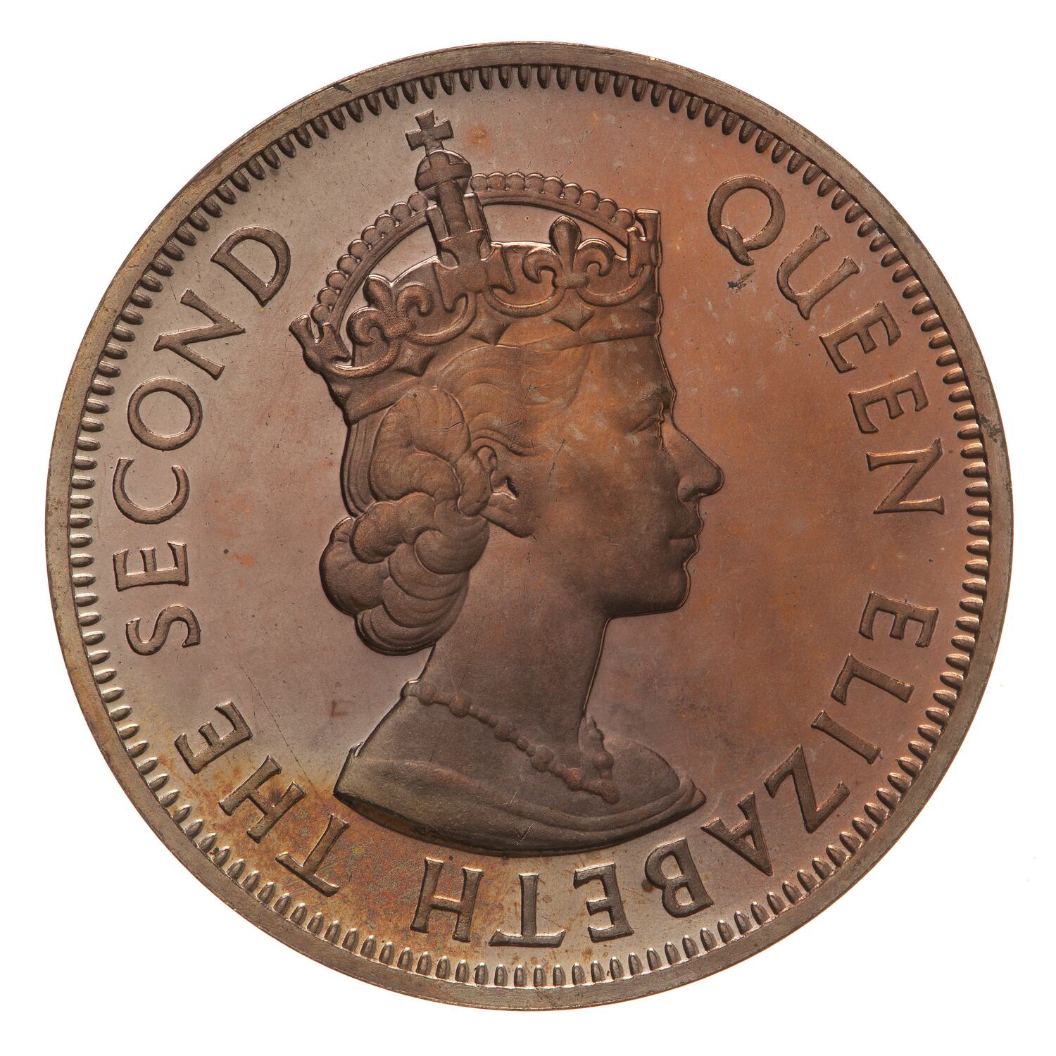 Crowned bust of the Queen facing right; around, QUEEN ELIZABETH THE SECOND; the artist's initials, CT, incuse on the bust truncation