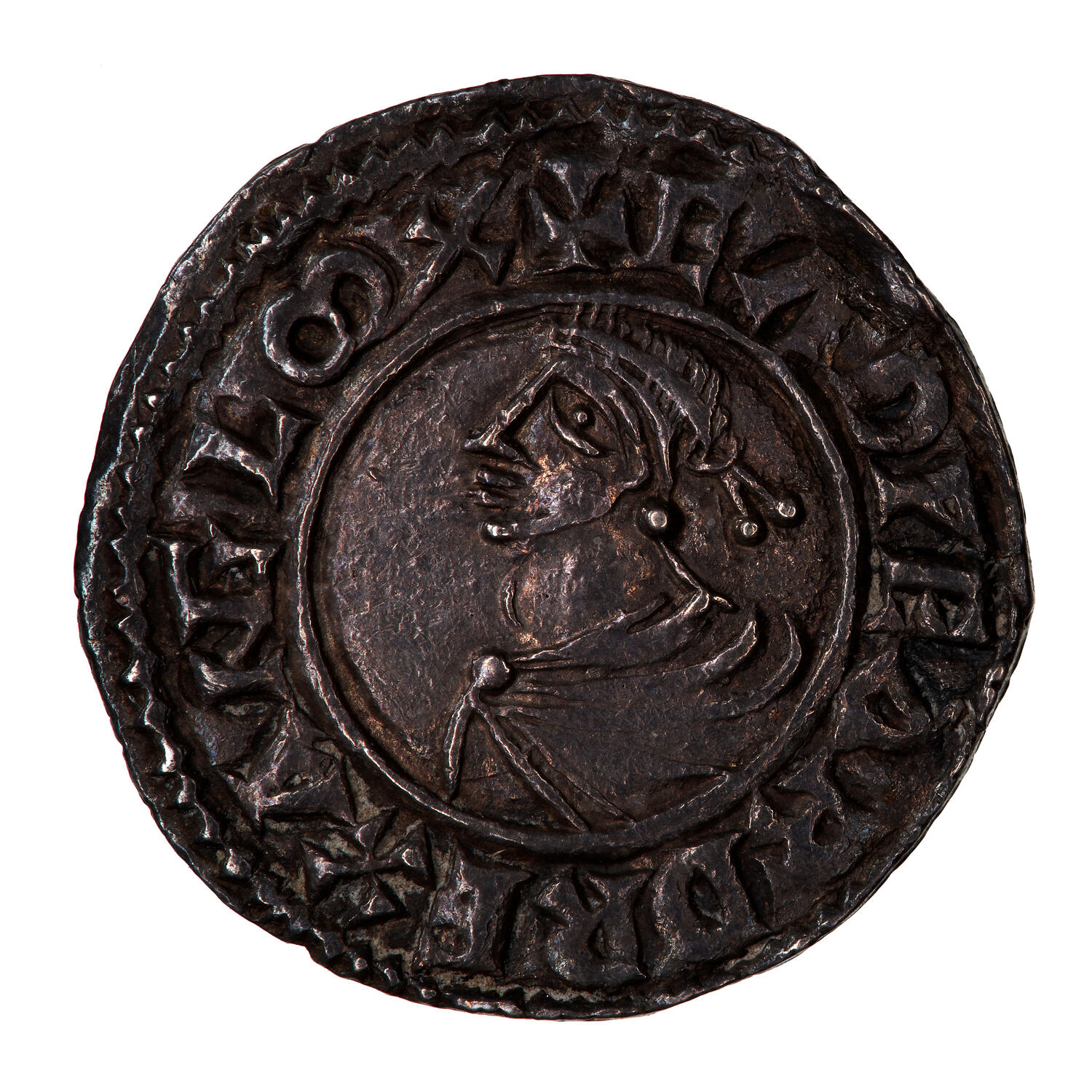 A diademed bust of the King facing left within a line circle, around, + EADVEARD REX ANGLORM (the reading of the last letters uncertain).