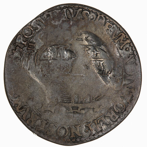 Busts of Philip and Mary face to face below a crown that divides the date 1555; around, PHILIP ET MARIA D G REX ET REGINA ANG