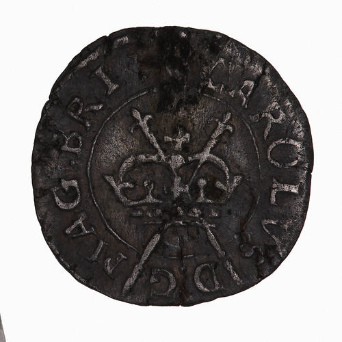 At centre within a line circle, a crown with crossed sceptres behind; around, (mm. uncertain) CAROLVS D G MAG BRI