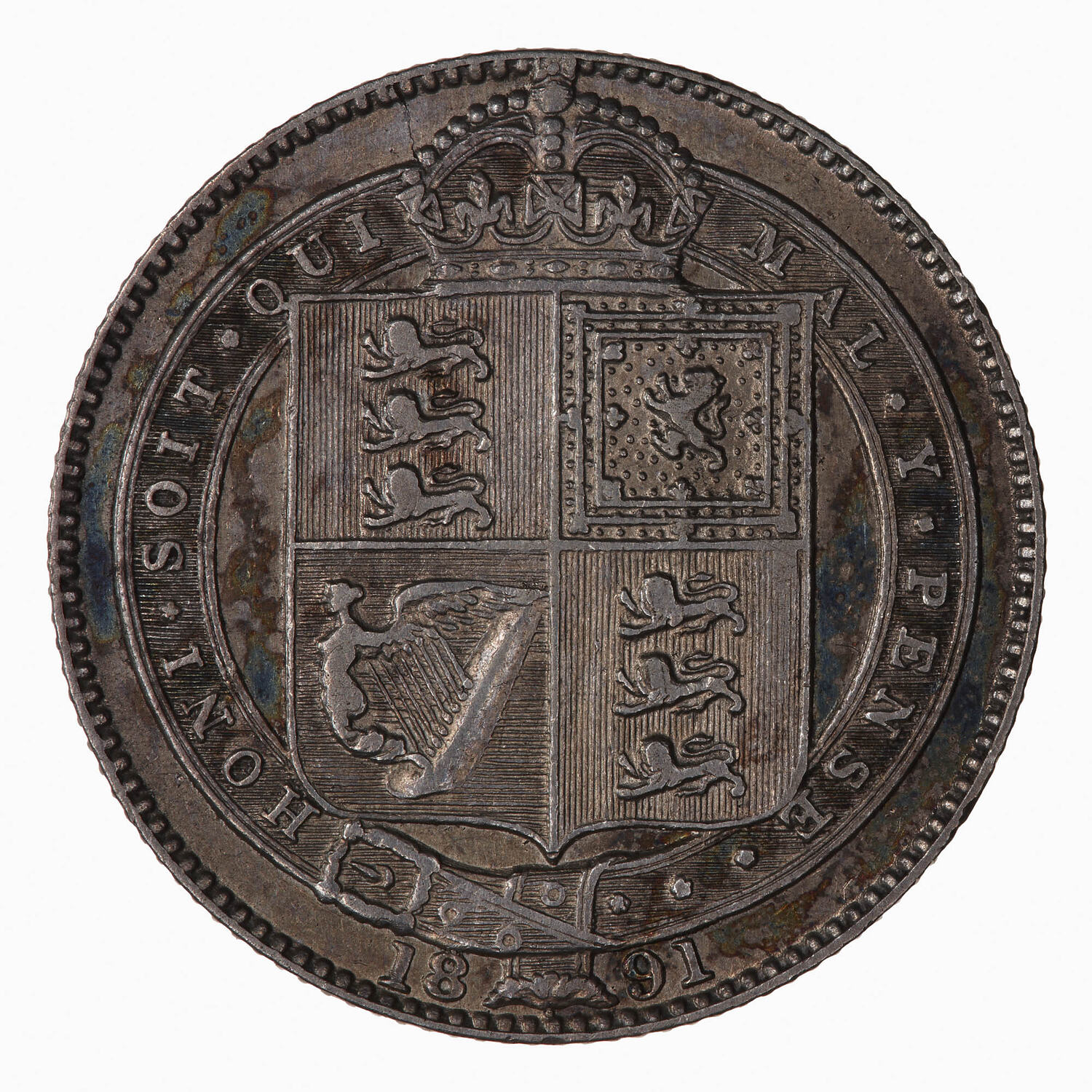 A shilling is a 12 pence coin. Struck as part of a new coinage in gold and silver to commemorate the Golden Jubilee of Queen Victoria, 1837-1887. The coins all shared a new 'Jubilee' obverse of the Queen by Boehm, adapted from his own Jubillee medal. The new obverse proved unpopular but was used until 1893. The reverse is adapted from the shilling of George IV used from 1823 to 1825.