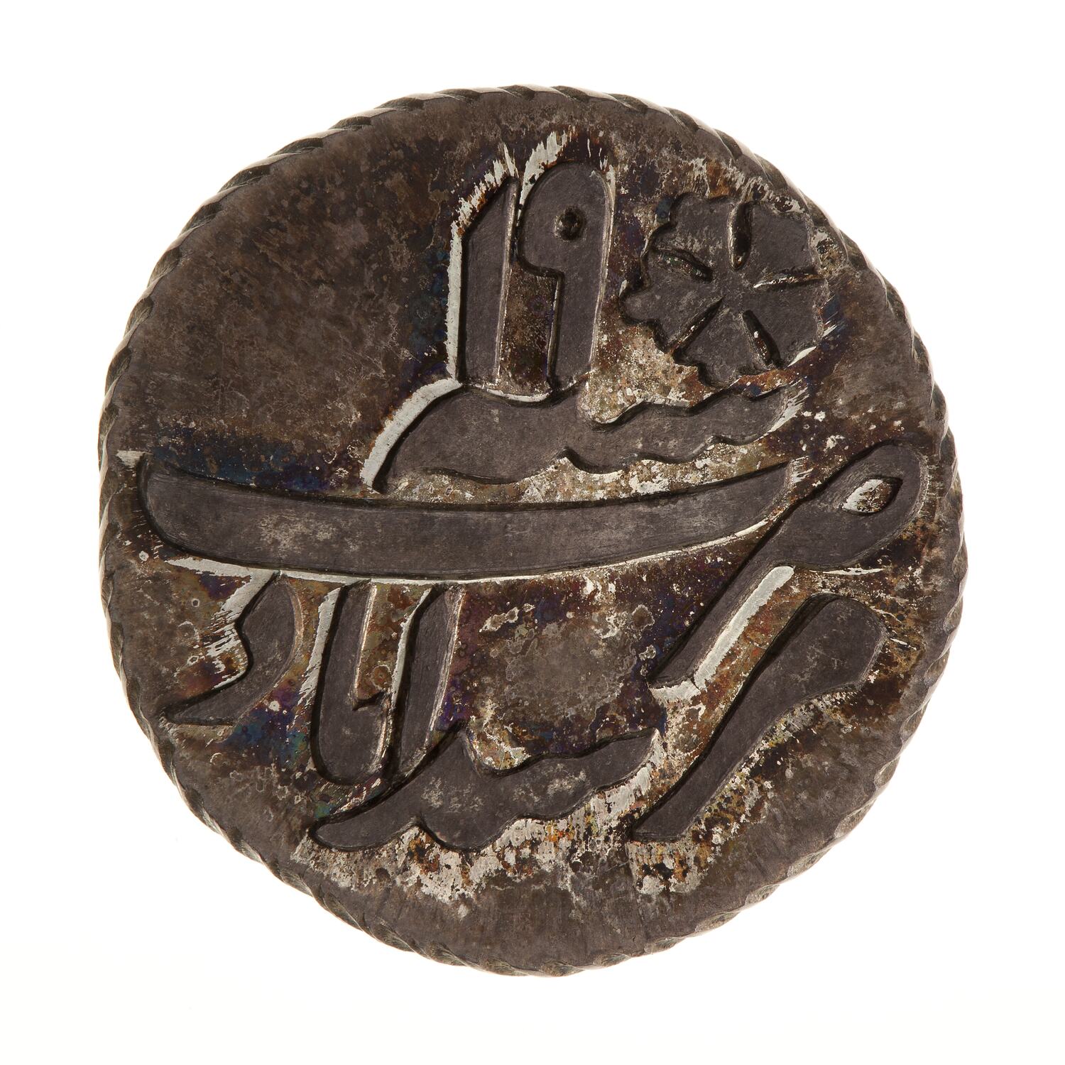 Persian couplet from incomplete die, dots (including the date numeral 0) not added