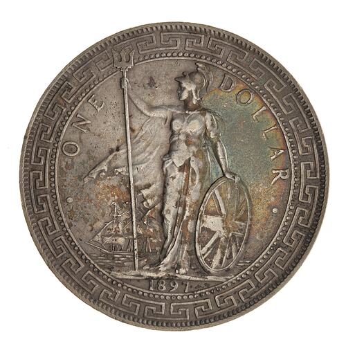 1 Dollar, British Trade Dollar, Issued by Straits Settlements, Penang, Malacca, Singapore, Hong Kong, Borneo, 1897 B