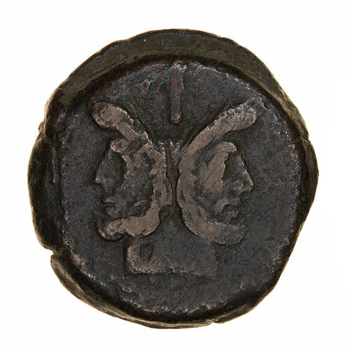 The prow of a Roman war ship facing right; above, MATILI; below, ROMA; in field at right the numeral, I