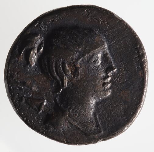 The hunting hound and spear depicted on the rverse are attributes of the goddess Diana