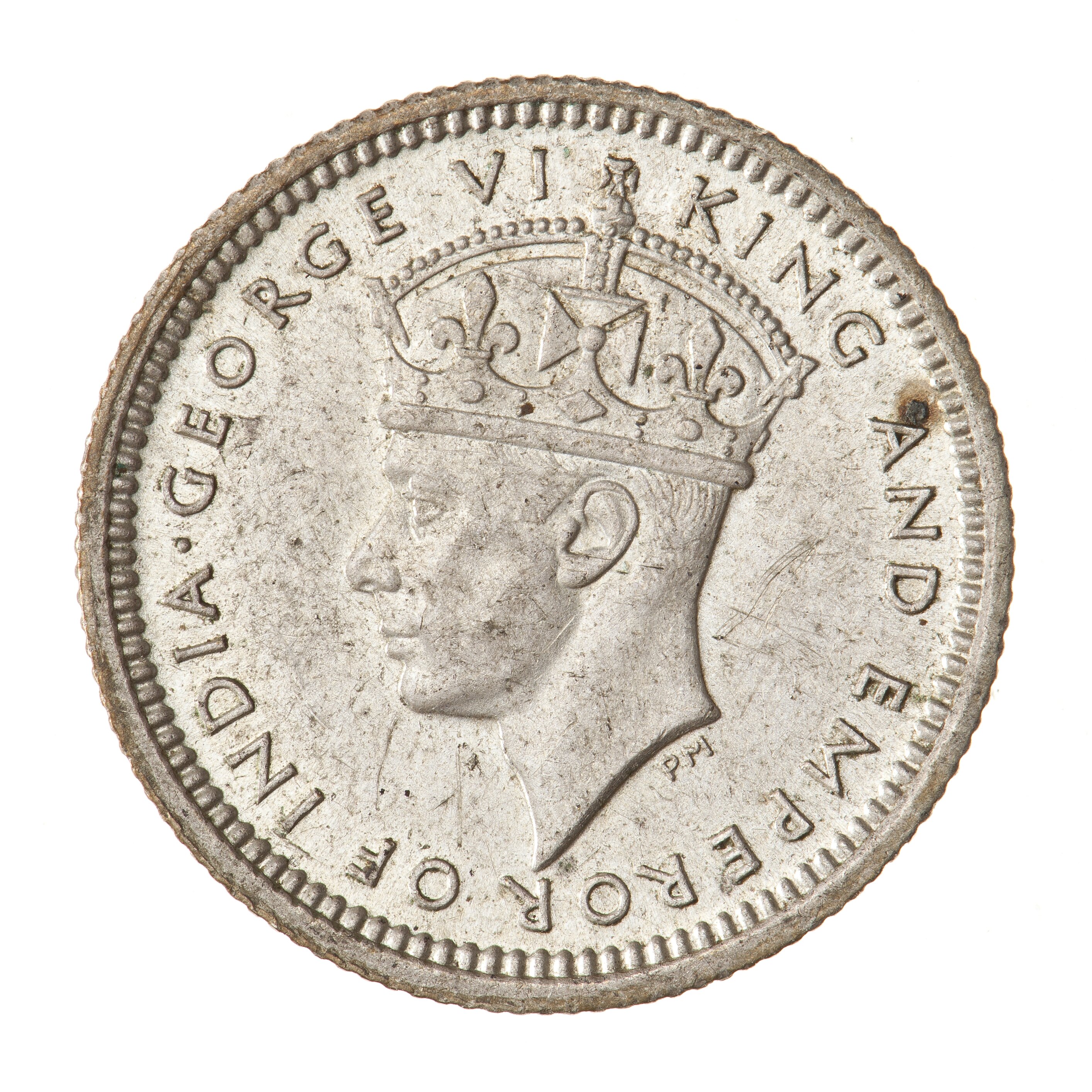 The British Government established the Malay Planning Unit in London in 1943 to prepare for the return to Civil Government to the area after the Japanese invasion force was removed. One of the steps it took was to have the Royal Mint strike coins, ready for placement in circulation soon after the return (the Japanese issued no coinage, relying on paper money). The coins were struck in London in 1943 and 1944 but all with the date 1943. They stock-piled in London until Malaya was placed under British Military Administration in August 1945 when the coins were soon put into circulation and a new issue bearing the date 1945 was begun. From 1943 silver 5 cent was struck with a 50% silver content (75% before the War) this, the post-war 1945 issue, retained the low silver content. To meet demand the 5 cent denomination was struck in both London and Calcutta in 1945, this is an example of the London production. The pre-war silver level was never returned to; in 1948 the use of silver in the coinage was abandoned, being replaced by a copper-nickel alloy.