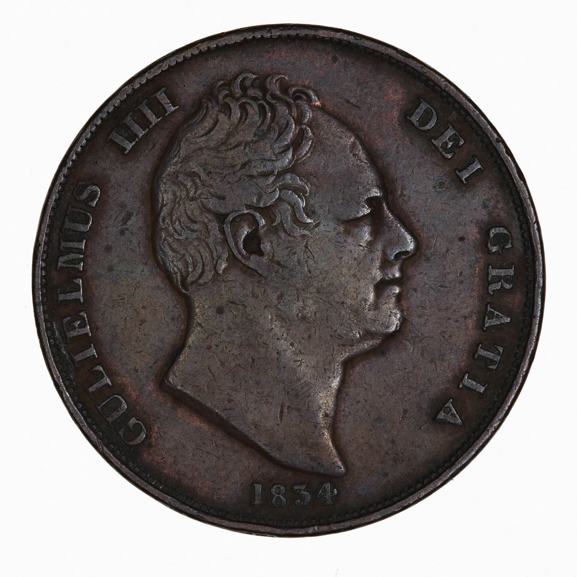 Bare head of the King facing right; around, GULIELMUS IIII DEI GRATIA; below, 1834