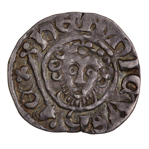 A crowned bust of the King facing within a line circle, holding a sceptre outside the circle; around; HENRICVS REX