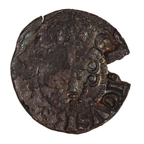 A crowned bust of the King facing within a beaded circle; around; HENRICVS REX III