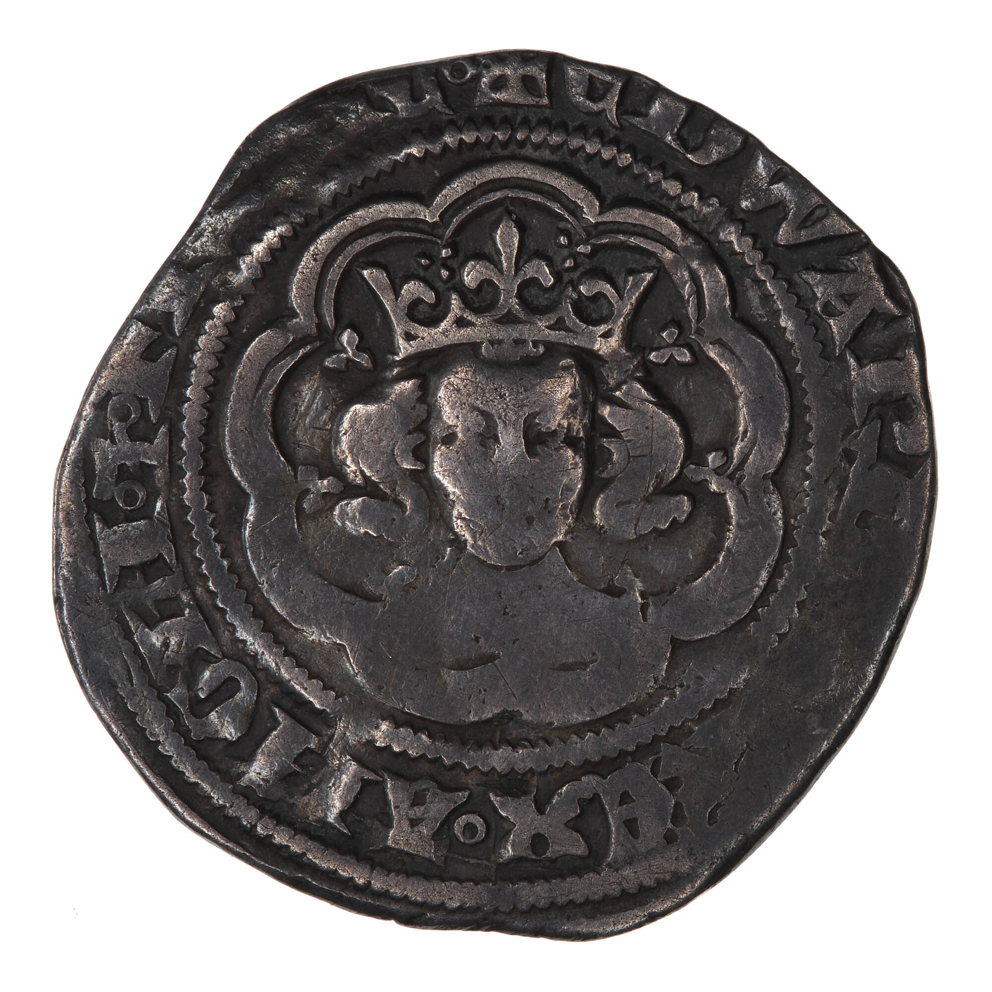 A crowned bust of the King facing; around, + EDWARD[VS] REX ANGLI Z FR[A]