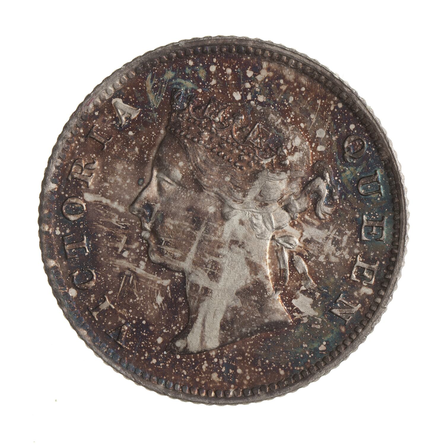 Head of Queen facing left wearing coronet; around, VICTORIA QUEEN