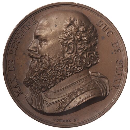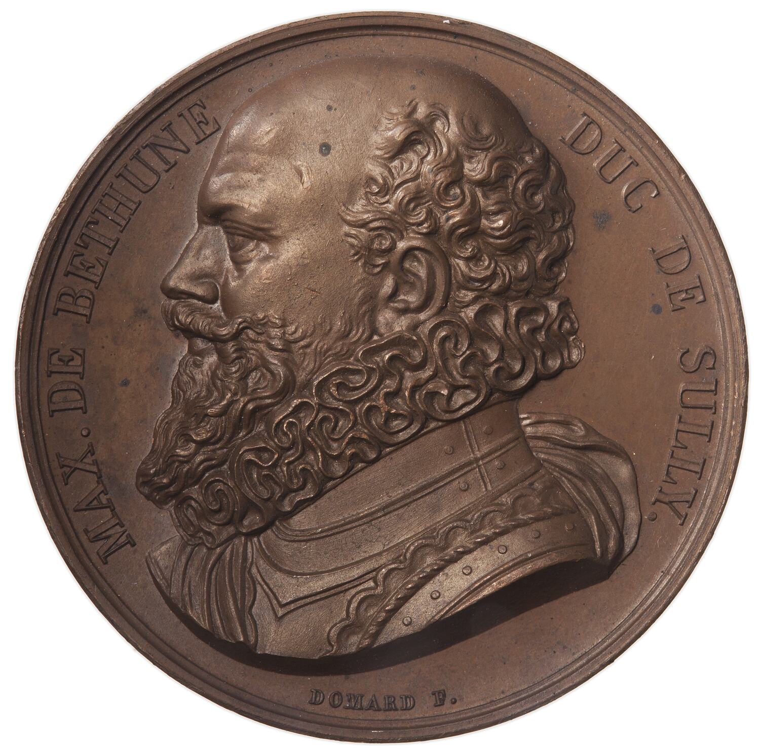 Armored bust facing left; around, MAX. DE BETHUNE DUC DE SULLY.; below in small lettering the artist's name, DOMARD F.
