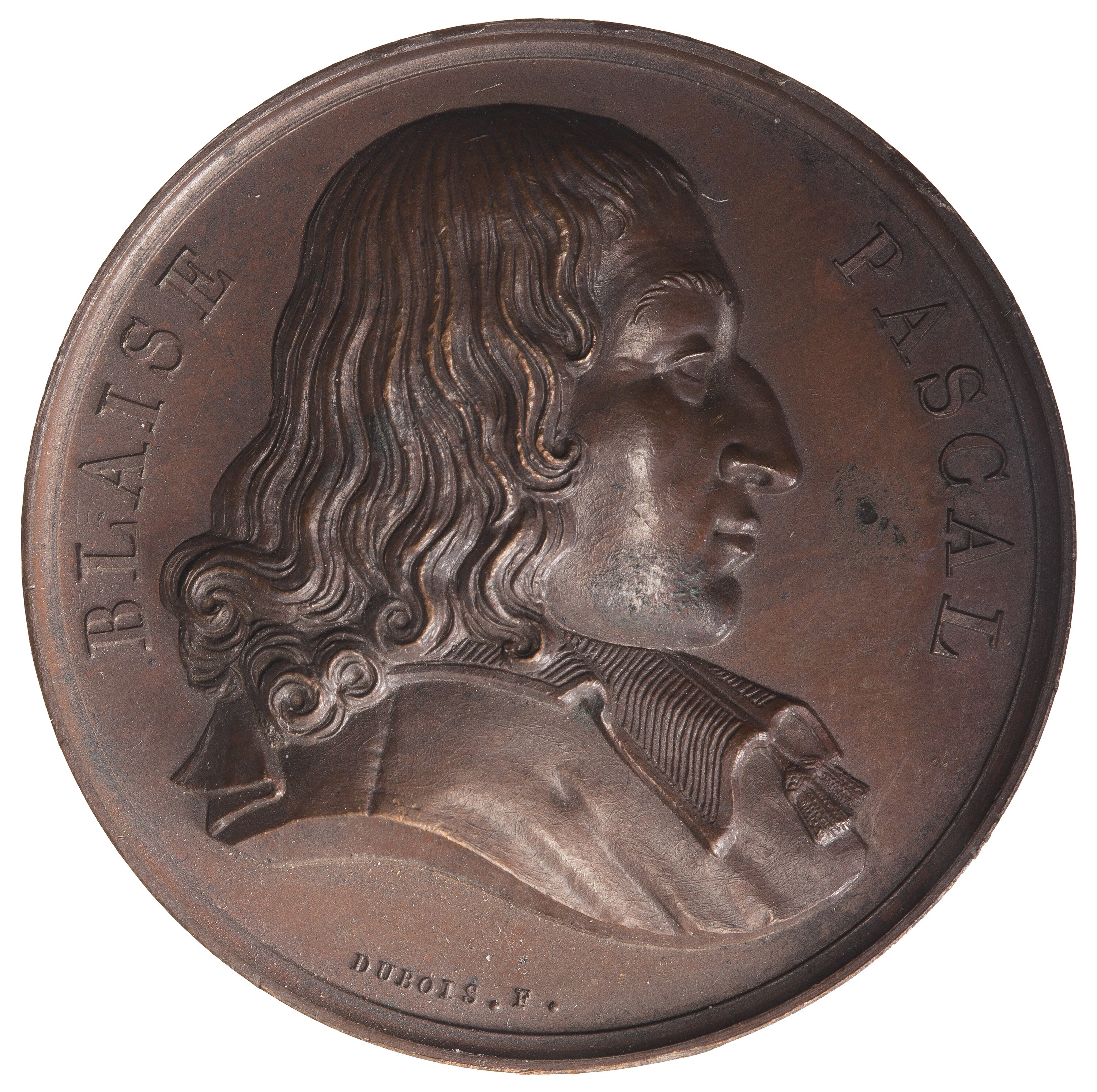 Portrait medal of Blaise Pascal (1623-1662) by Dubois. One of the Galerie Metallique des Grand Hommes Francais series. Minted in Paris, 1817.