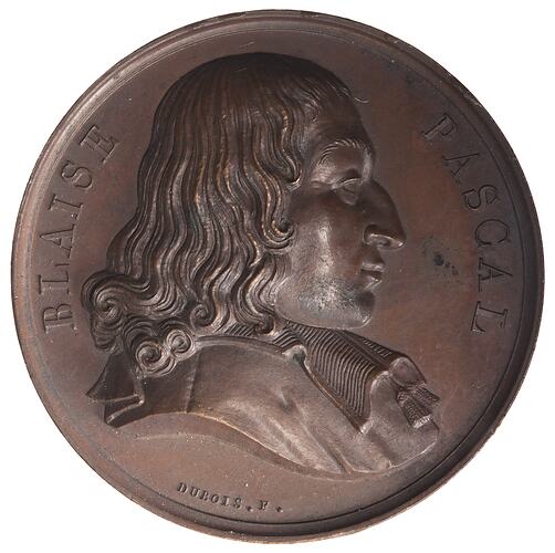 Bust facing right; around, BLAISE PASCAL; below in smaller lettering the artist's name, DUBOIS. F.