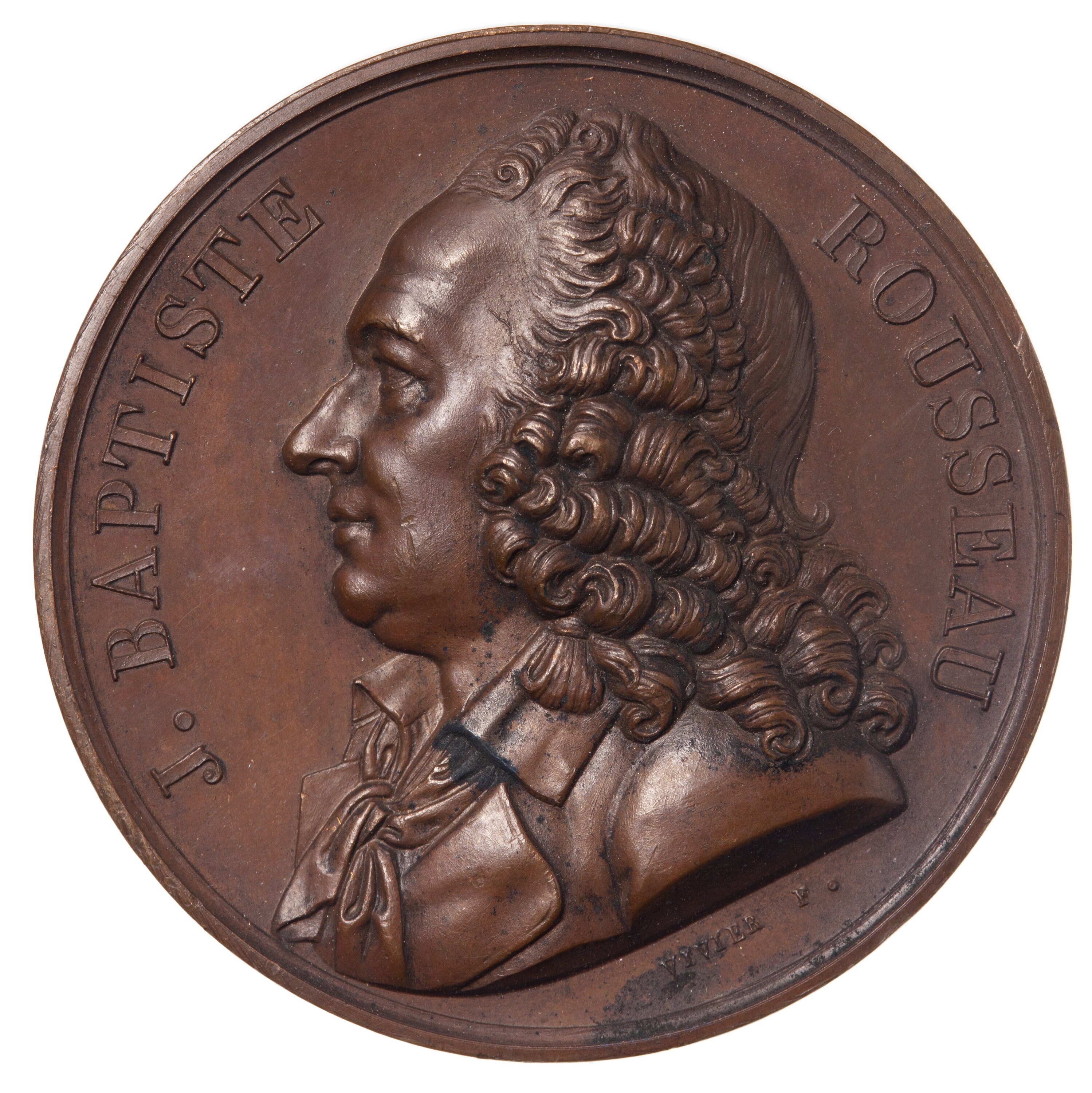Portrait medal of Jean-Baptiste Rousseau (1671-1741) by Vivier. One of the Galerie Metallique des Grand Hommes Francais series. Minted in Paris, 1819.
