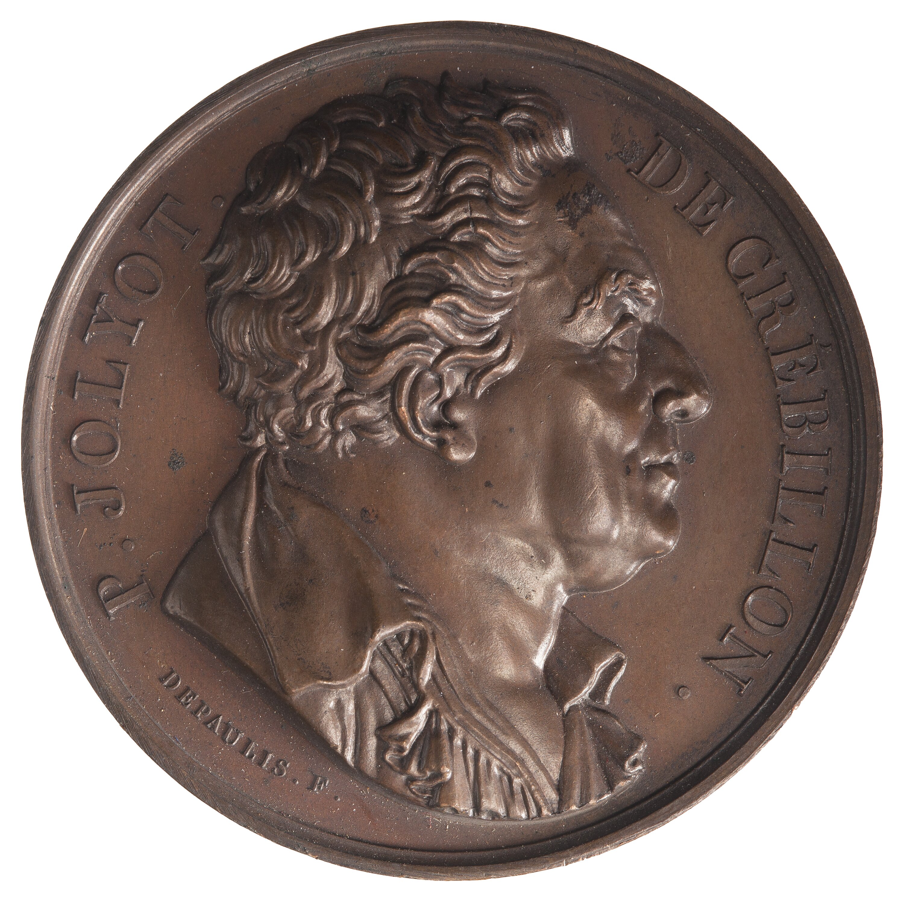 Portrait medal of Prosper Jolyot de Crébillon (1674-1762) by Alexis J. Depaulis. One of the Galerie Metallique des Grand Hommes Francais series. Minted in Paris, 1818.